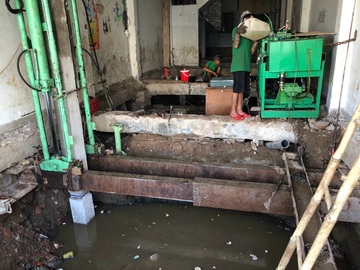 #xử lý nhà   ép cọc bê tông   chống lún   chống nghiêng   nâng chỉnh nhà   nâng chỉnh nghiêng nhà   sửa chữa nhà nghiêng   sửa chữa nhà lún   thần đèn Việt Nam   Ép cọc bê tông gia cường móng   xử lý nền móng