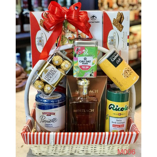 M006 - Giỏ quà đan lát thủ công cao cấp Tết 2022, rượu MORTLACH cao cấp