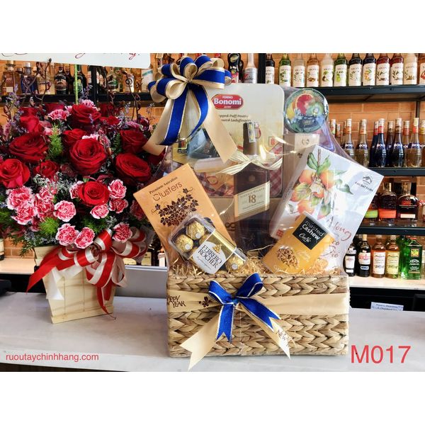 M017 - Giỏ quà đan lát thủ công cao cấp Tết 2022, rượu Johnny Walker 18 cao cấp